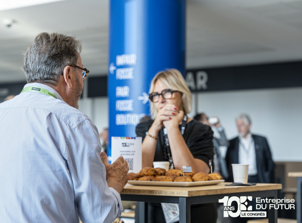 Deux dirigeants en pleine discussion lors dâune rencontre Entreprise DU FUTUR – Le CongrĂšs juillet 2025